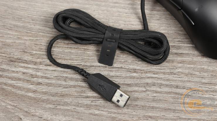 Кабель несъемный, длиной в два метра, с разъемом USB Type-A и фиксирующей силиконовой лентой. Оплетка ROG Paracord гибкая и легкая, с минимальным сопротивлением.
