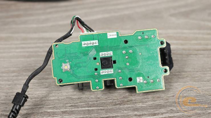 Обратная сторона платы содержит переключатель кнопки смены профилей работы и отверстие для оптического сенсора.