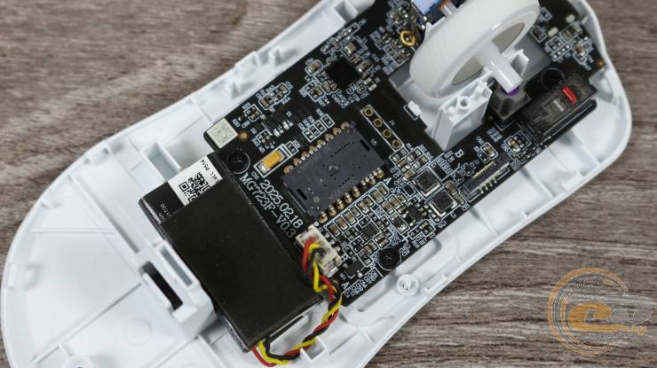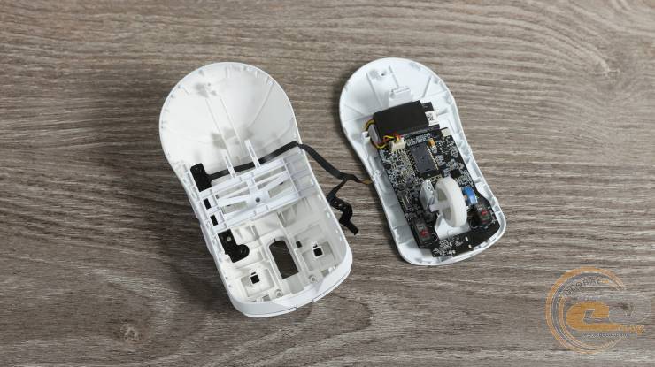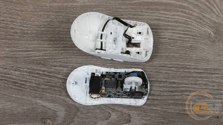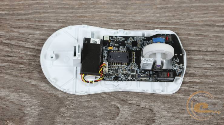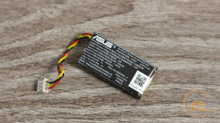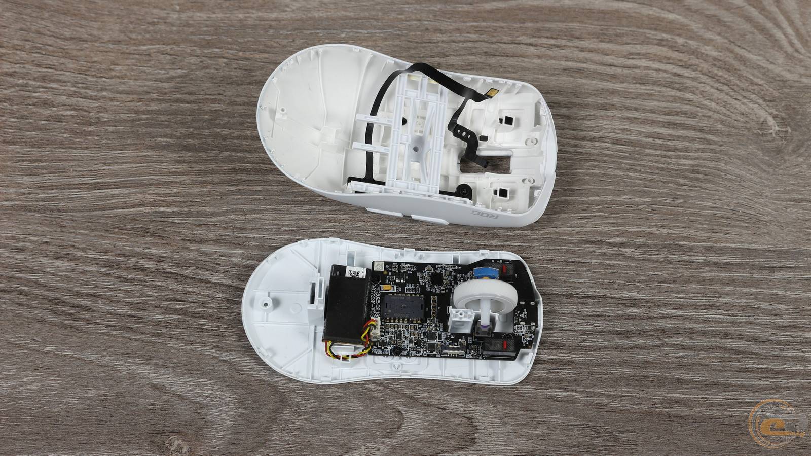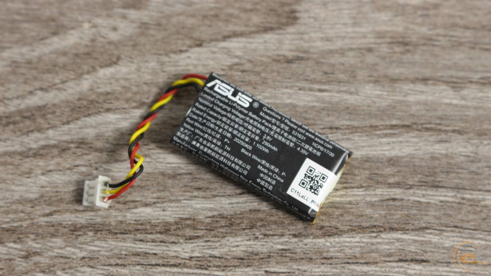 Рядом с платой установлен компактный аккумулятор емкостью 1,102 Втч (290 мАч, 3,8 В), производства Guangdong Highpower. Несмотря на большое лого ASUS, это минимум, который обычно применяют в мышах такого класса.