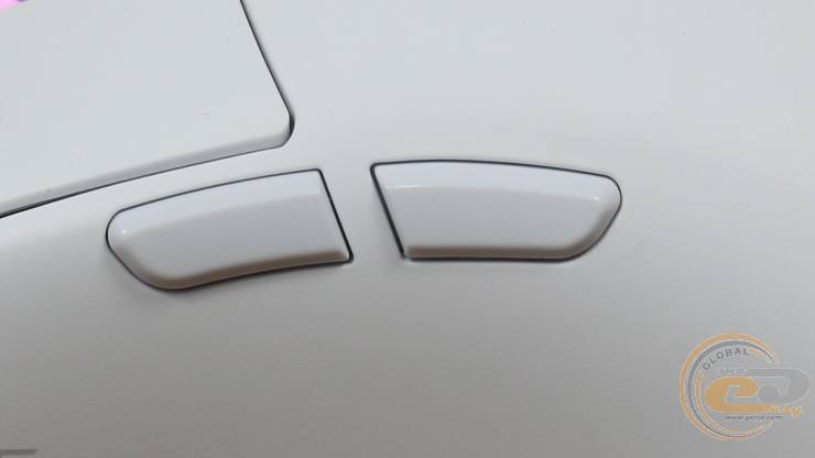 Основные кнопки физически отделены от верхней части корпуса. Их конструкция сводит к минимуму претревел и сайдтревел, а посттревел реализован умышленно – около 1 мм, чтобы сохранить стабильность при быстром клике. Поверхность кнопок – гладкая, с четкой центровкой пальца, без люфтов и дребезжания.
