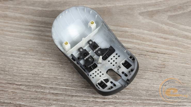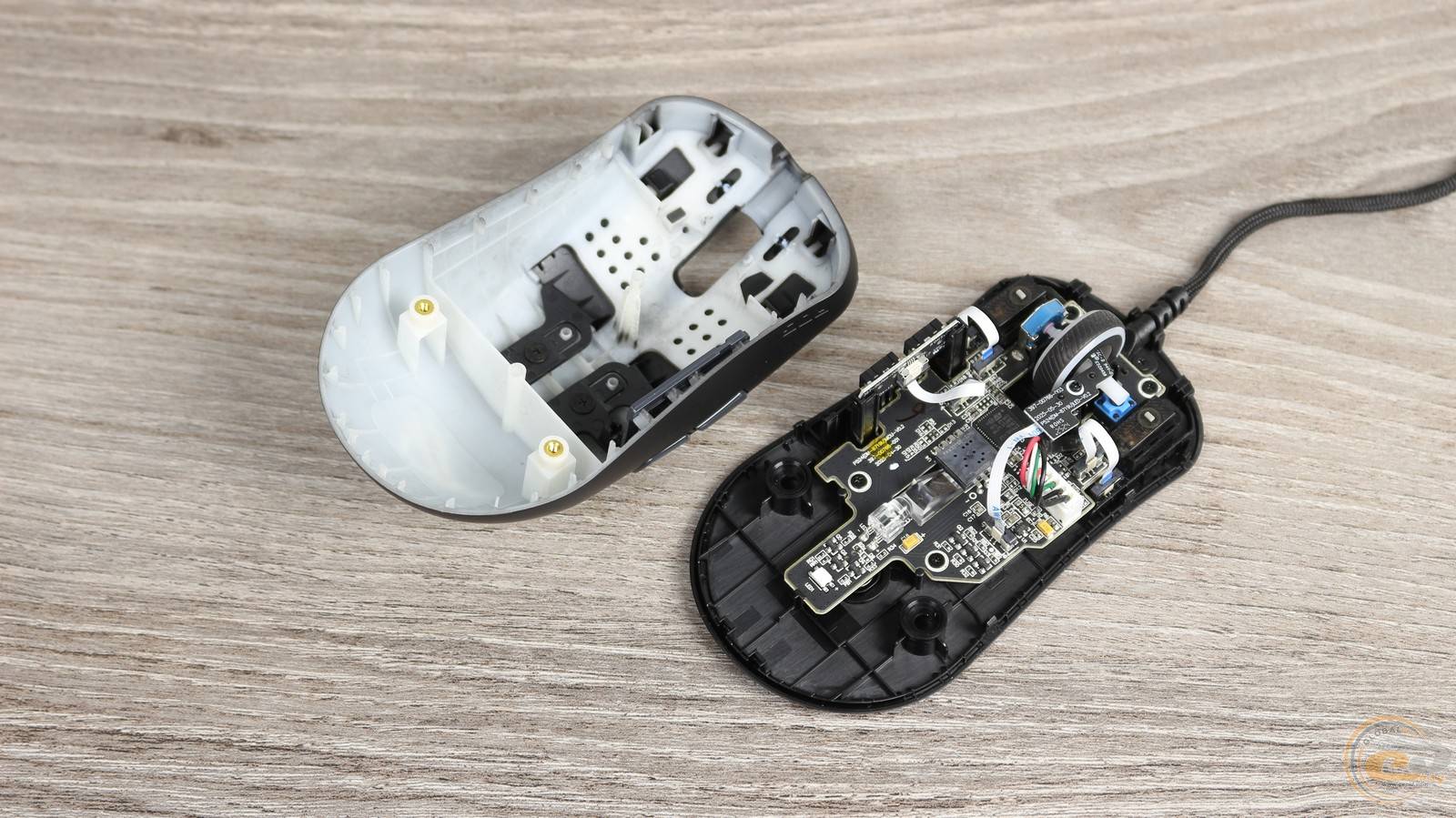 Конструкция внутри – без сюрпризов: толстый пластик, логическая компоновка, надежные крепления. Мышь легко разбирается и обслуживается, не выглядит одноразовой. Она создана для того, чтобы работать не один год — и внешне, и внутри это не ширпотреб, а солидное решение.