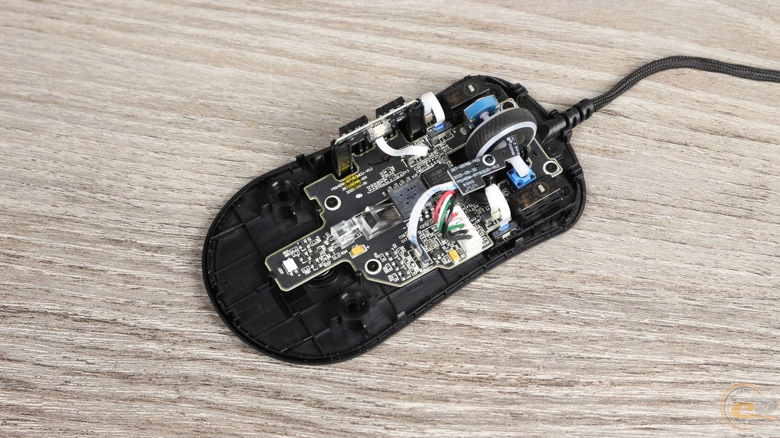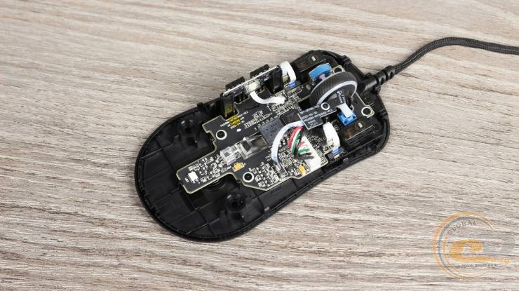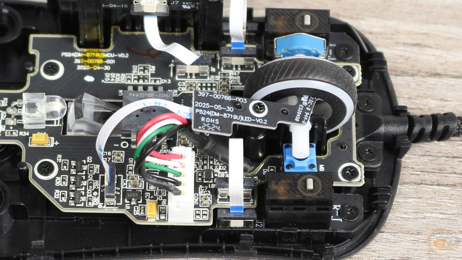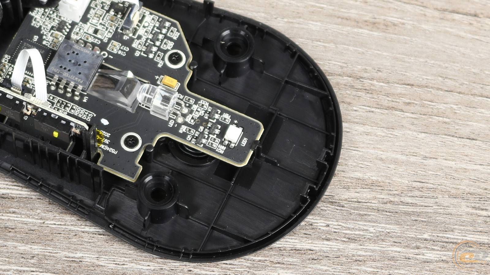 На главной плате размещен оптический сенсор PAW 3311 (PAW3311DB-T2MU) с разрешением 12000 DPI.