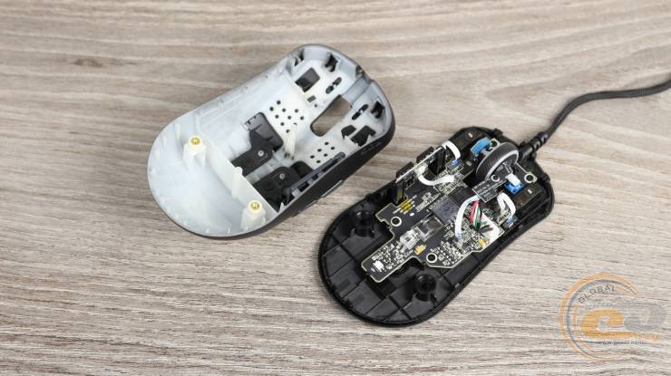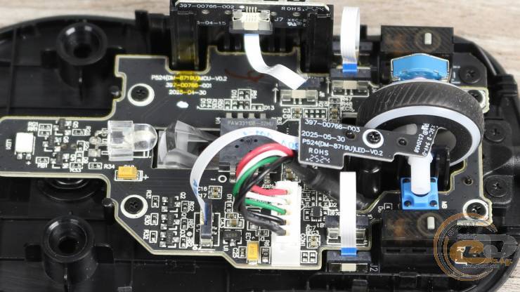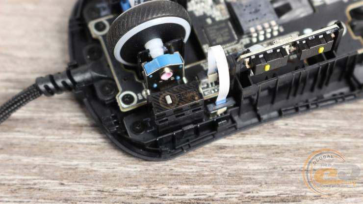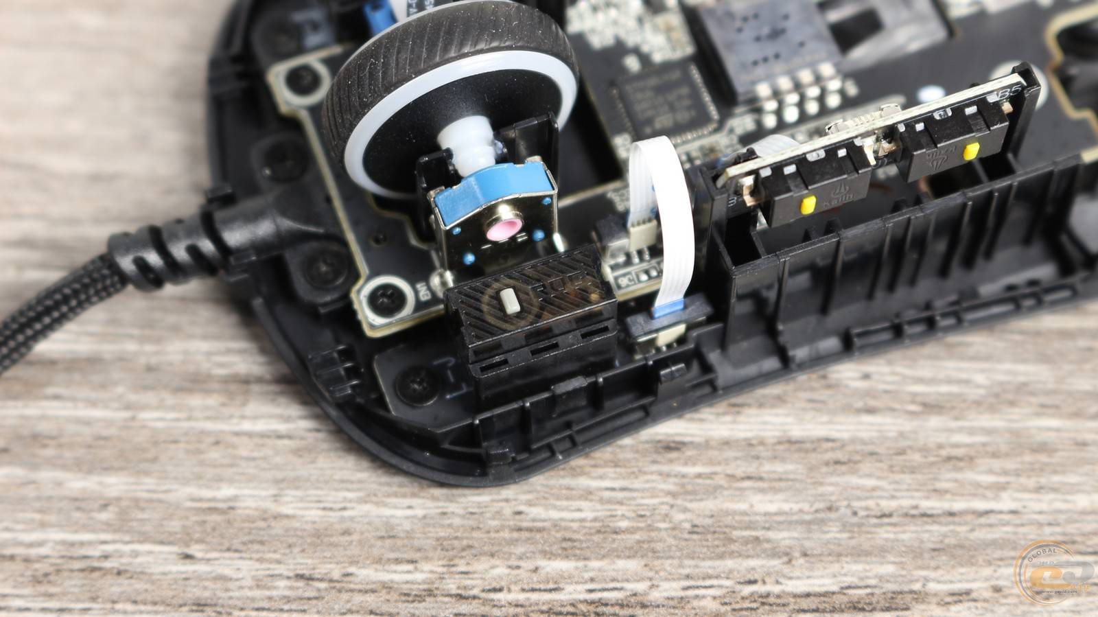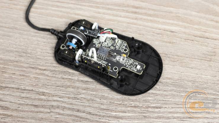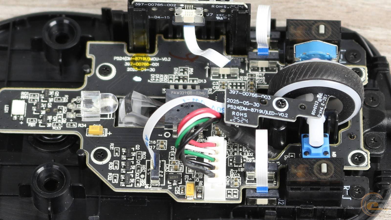 На главной плате размещен оптический сенсор PAW 3311 (PAW3311DB-T2MU) с разрешением 12000 DPI.