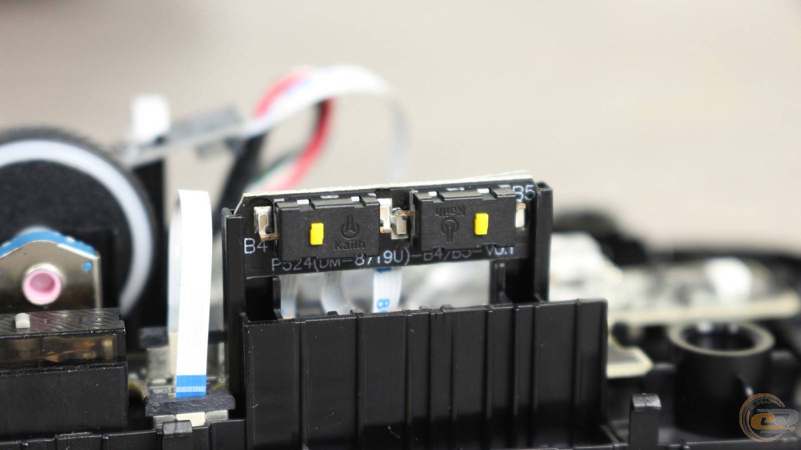 Боковые кнопки установлены на переключателях Kailh Black Shell Yellow Dot, рассчитанных на 60 млн нажатий. Нажимаются четко, без люфтов.