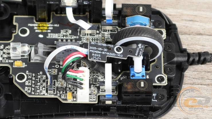Справа от него расположена платка с RGB-светодиодом, подсвечивающим колесо прокрутки.