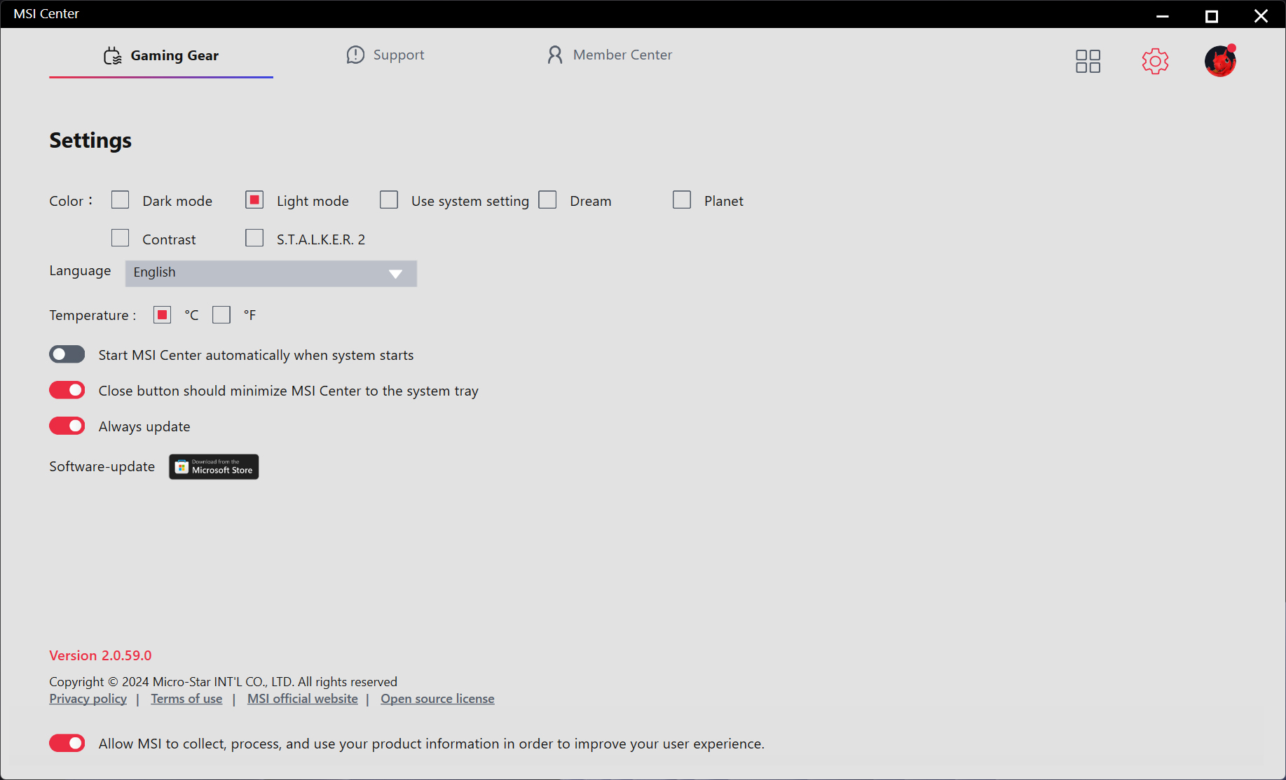 Программное обеспечение MSI Center
