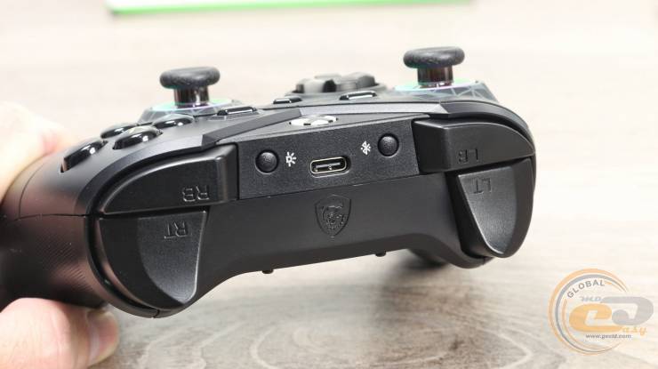 Также у MSI FORCE PRO WIRELESS есть по паре бамперов и триггеров, кнопки переключения подсветки и создания пары, а также привычный разъем USB Type-C.