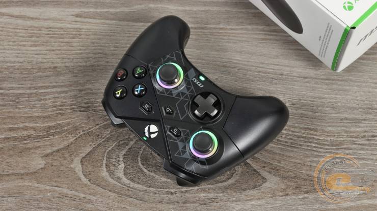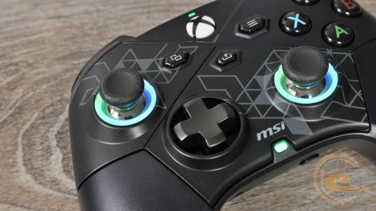Есть у MSI FORCE PRO WIRELESS ряд других интересных и полезных решений: съемные стики, возможность их калибровки силами комплектного ПО (что со временем может оказаться очень полезным), LED-подсветка с несколькими режимами и сменная насадка D-pad в комплекте.