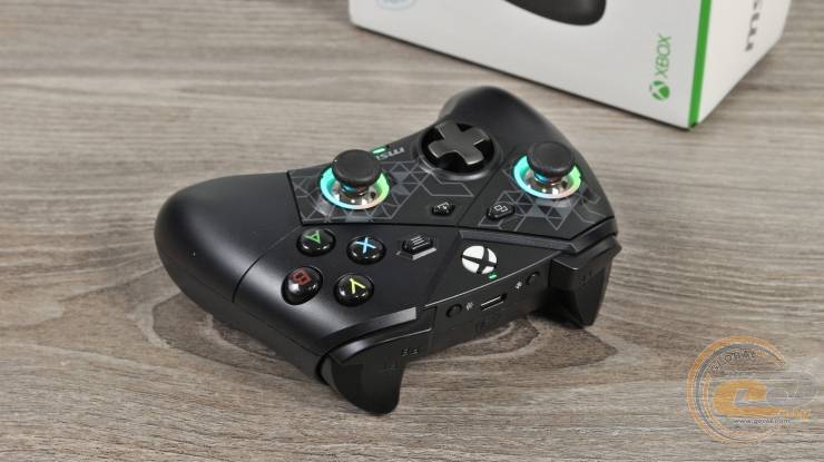 Что касается набора и расположения кнопок, то верхние элементы здесь полностью такие же, как и на оригинальном геймпаде Microsoft Xbox. На месте: левый и правый стики, D-pad, блок ABXY, а также кнопки Меню, Поделиться, Просмотр и Xbox. А еще здесь есть два светодиода: статус и питание/аккумулятор. Последний светится зеленым при полностью заряженной батарее, а в процессе восстановления уровня заряда мерцает: от 1% до 29% – красным, от 30 до 69% – желтым и от 70 до 99% – зеленым цветами.