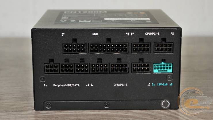 Основные разъемы питания привычные — 20+4-контактный ATX и два 4+4-контактных ATX12V на отдельных кабелях. Для видеокарт предусмотрены три 6+2-контактных PCIe на трех проводах и 600-ваттный PCIe 5.1 (12V-2x6). А для подключения периферии имеется восемь SATA и пара PATA на двух кабелях.