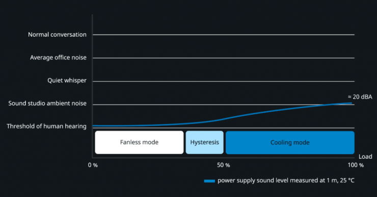 Кроме того, такое сочетание коэффициента PF (≥0,97) и энергоэффективности (≥87%) позволило киловатнику получить сертификат Cybenetics Gold, тогда как младшие решения линейки соответствуют более престижному стандарту Cybenetics Platinum.