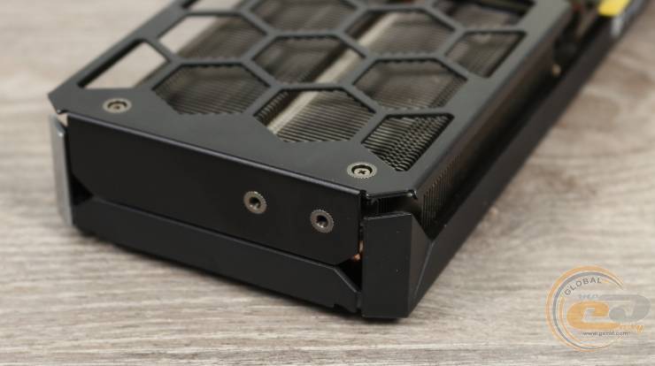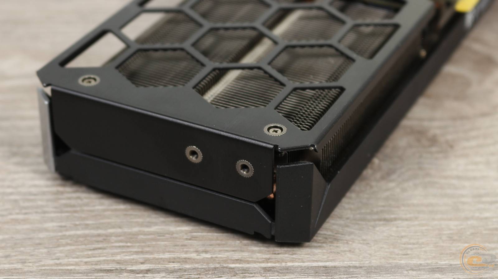 Радиатор этой модели разделен на две секции. Он имеет медное основание и четыре тепловые трубки, а чипы видеопамяти и зона VRM дополнительно накрыты отдельными алюминиевыми пластинами.