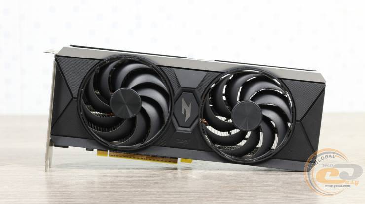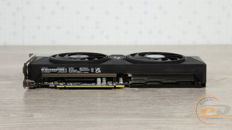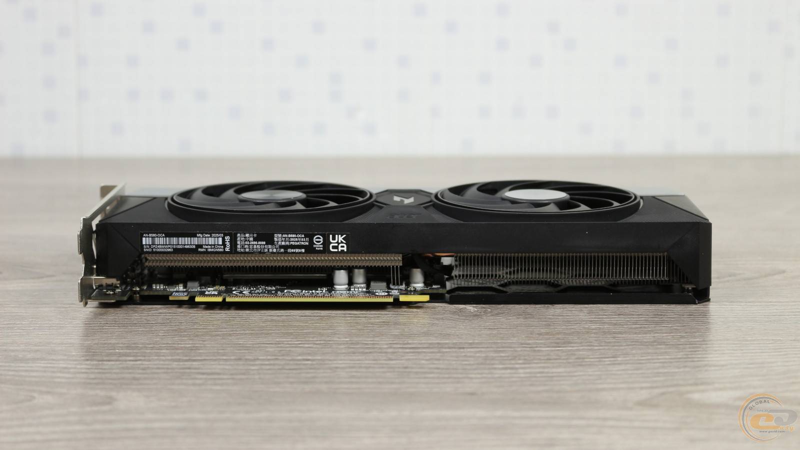 Видеокарта оснащена 12 ГБ памяти типа GDDR6, чипы которой произведены компанией Samsung. Эффективная скорость работы составляет 19 Гбит/с на контакт, а 192-битная шина обеспечивает пропускную способность на уровне 456 ГБ/с. Но обратим ваше внимание на то, что видеокарта использует всего восемь линий PCI Express 4.0.