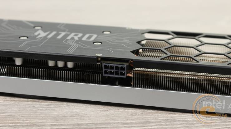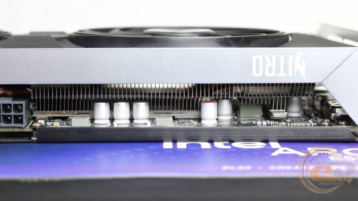 Коробка, в которой поставляется видеокарта, получила характерные для продукции Intel сине-фиолетовые элементы и большой логотип Nitro на одной из боковых сторон.