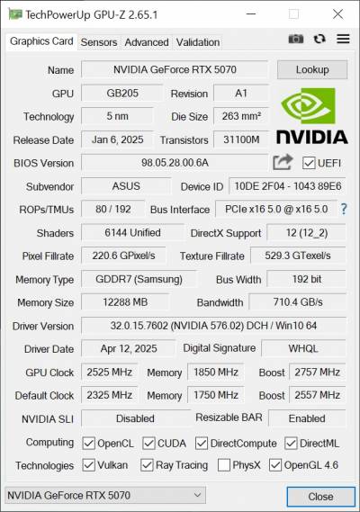 Обзор ASUS Prime GeForce RTX 5070 12GB GDDR7 OC Edition: видеокарта с минимальной переплатой