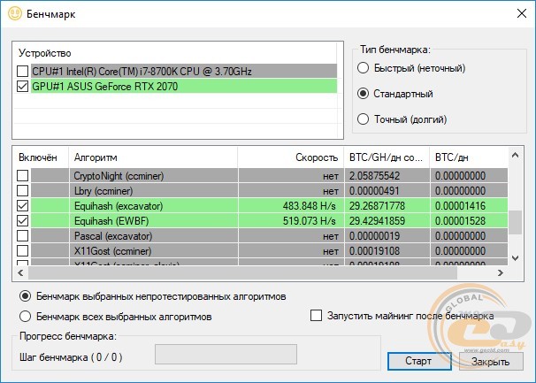 По традиции завершают блок тестов результаты производительности при майнинге: