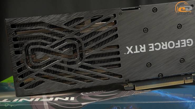Охлаждаются они кулером, в основе которого находится алюминиевый радиатор, который через три медных тепловых трубки контактирует с довольно большим медным основанием. Последняя накрывает GPU и чипы VRAM на лицевой стороне. А вот бэкплейт не принимает участия в охлаждении, потому что он полностью пластиковый.