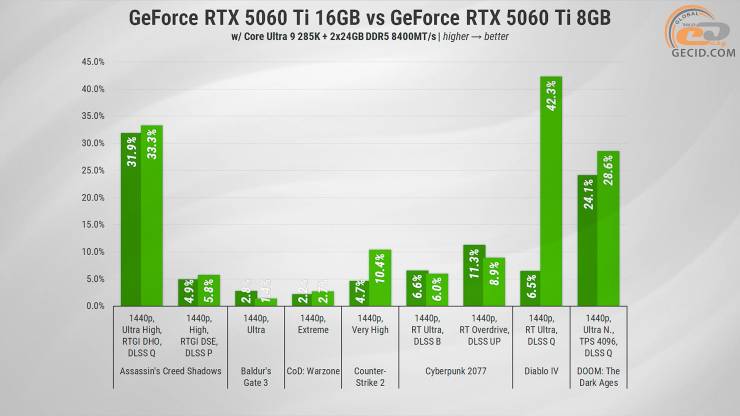 Сравнение GeForce RTX 5060 Ti 16 ГБ против 8 ГБ: за что стоит переплатить?