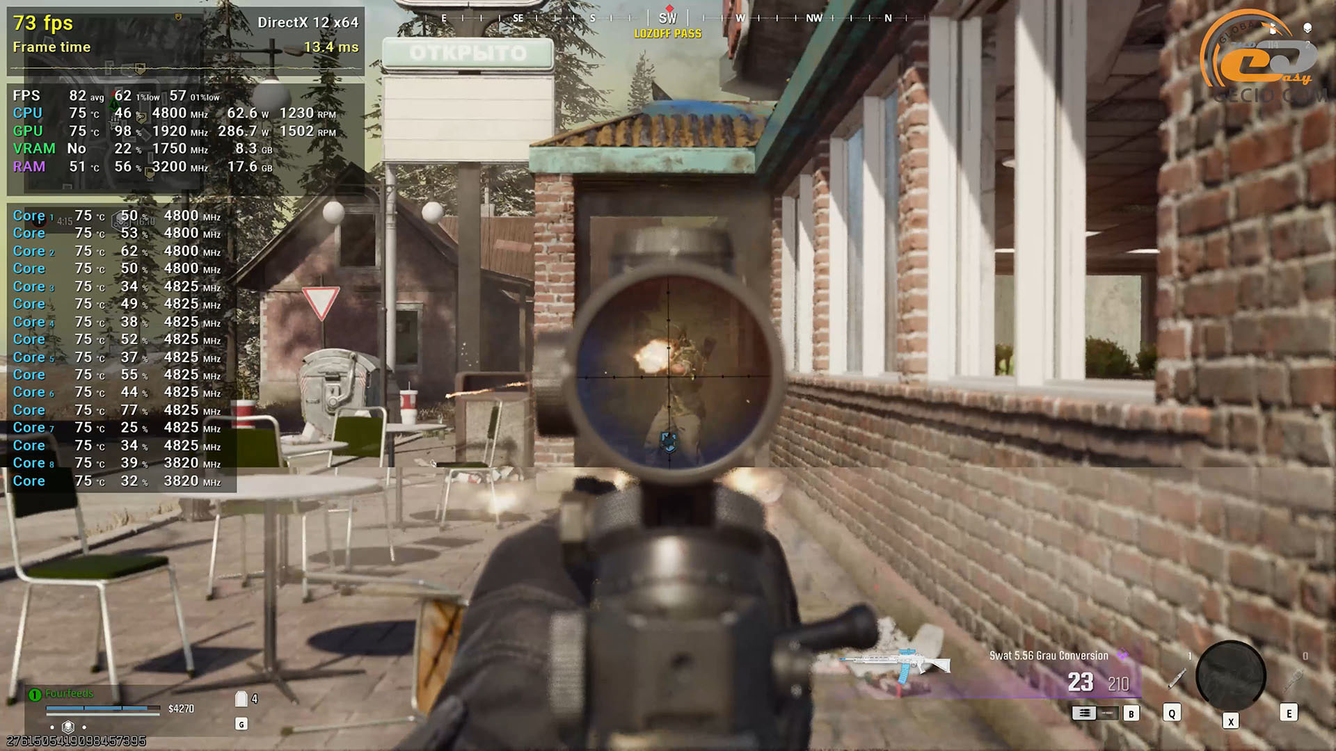 Также с удовольствием можно бегать и в Call of Duty: Warzone с экстремальным качеством изображения. При перестрелках или большом количестве эффектов прослеживается просадка частоты кадров примерно до 70-ти. Поэтому при желании «подтянуть» FPS к более конкурентоспособному можно пойти путем выборочного снижения настроек или подключения DLSS.