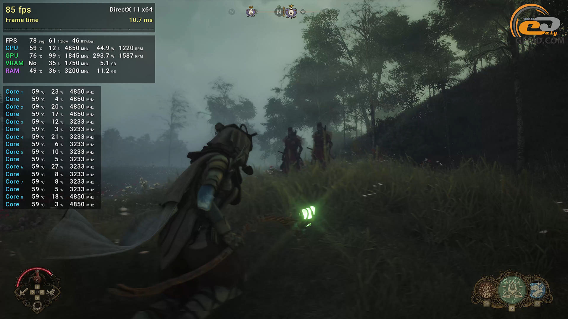 Также довольно сложно видеокарте далась еще недостаточно оптимизированная Elder Scrolls IV Oblivion Remastered — получить более 60 кадров в секунду можно только на высоких настройках с использованием DLSS в сбалансированном режиме. Однако редкие подергивания, которые скоро уже, вероятно, станут фишкой этой игры, присутствуют, и довольно неприятные, а их появление не всегда связано с каким-то особым событием.