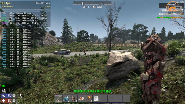 7 Days to Die на ультракачестве бегается довольно бодро, хотя показатель очень редких событий указывает на периодические подтормаживания, которые не влияют критически на геймплей. Однако оптимизация игры все же требует внимания от разработчиков, как это было и до релиза в прошлом году.