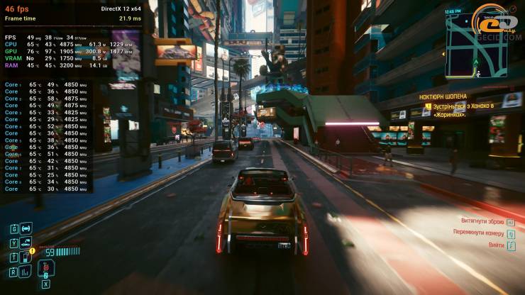 При желание пройти Cyberpunk 2077 с сочной картинкой можно попытаться активировав пресет графики RT Ultra, хотя и придется заручиться помощью DLSS в сбалансированном режиме, который все же ухудшит четкость той же сочной картинки. Но даже с таким расписанием средний FPS будет составлять лишь 50, что для кого-то может оказаться недостаточным.