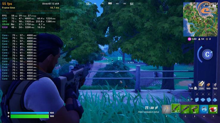 В легендарное королевское сражение Fortnite можно играть и на эпическом пресете графики. Но для получения более-менее плавной картинки нужен сбалансированный режим апскейлинга. Следовательно, бороться за победу можно и в таких условиях, хотя во время тяжелых столкновений или большого количества зданий могут ожидаться достаточно критические проседания, которые повлекут отрицательные эмоции.