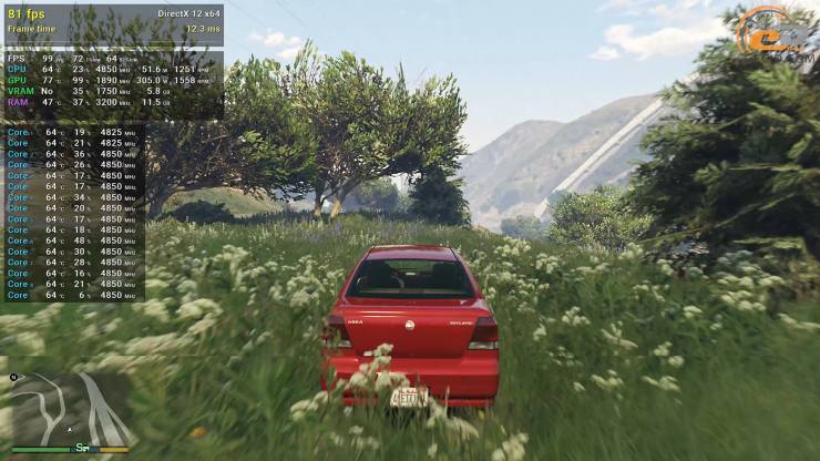 Глядя на обновленную версию Grand Theft Auto V, где разработчики улучшили качество разнообразных объектов и эффектов и добавили новых красок с трассировкой лучей, можно с уверенностью сказать, что даже при максимальных настройках графики RTX 2080 Ti справляется идеально. Во время гонки в городе картинка обновляется с частотой в 100 раз в секунду, а за пределами населенного пункта в густой растительности теряется примерно четверть FPS, хотя все равно геймплей остается приятным.