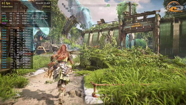 Благодаря достаточно большому видеобуферу, Horizon Forbidden West запускается на очень высоких настройках, а получить более близкий к идеальному геймплей с частотой кадров за 60 без просадок и подергиваний помогает DLSS в режиме Quality.