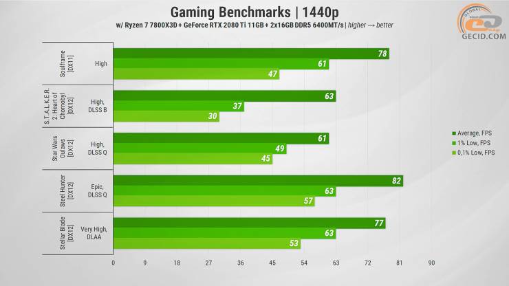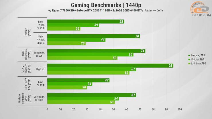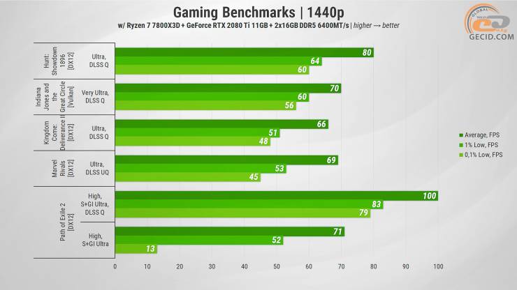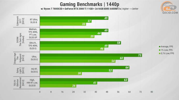 Конечно, для комфортного игры в современных тяжелых проектах приходится полагаться на DLSS, а иногда и снижать настройки графики — особенно если речь идет о трассировке лучей или плохо оптимизированных тайтлах. Однако в большинстве случаев даже на ультра пресетах RTX 2080 Ti также благодаря 11-гигабайтному видеобуферу обеспечивает приятный FPS, сохраняя достойный игровой опыт. Но вопреки всему приходится мириться с уже устаревшим PCIe 3.0, который может снижать быстродействие и очень большим уровнем TDP, что действительно сильно влияет на общее энергопотребление компьютера.