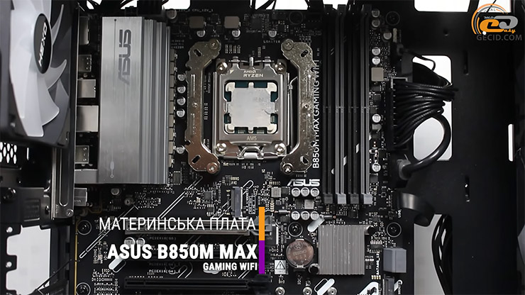 За стабильность CPU под нагрузкой отвечает HEXO ARGB V2, который умело сдерживает температуру 8-ядерника и делает это без лишнего шума. А материнская плата ASUS B850M MAX GAMING WIFI дает современный функционал, поддержку PCI-E 5.0 и современных интерфейсов, а также возможность безболезненного апгрейда в ближайшие годы – все это делает платформу не только производительной, но и перспективной.