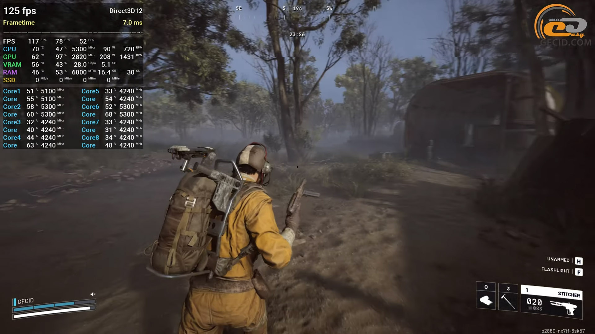 В свежей PvPvE игре — ARC Raiders система выглядит очень уверенно: максимальные настройки с RTX глобальном освещение на эпическом уровне воссоздают насыщенную картинку с глубокими тенями. Средний FPS подбирается к 120-ти, что создает достаточный запас для динамических перестрелок. Иногда проскакивают легкие, почти незаметные подергивания, но они не выбивают из ритма и на общее впечатление практически не влияют. В целом – очень удобный и плавный геймплей.