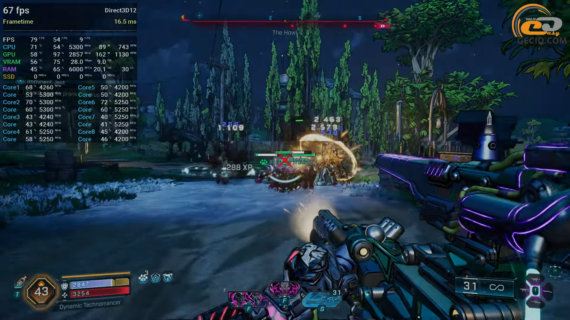 Проходить новую часть серии игр Borderlands можно на очень высоком пресете графики вместе с добавленным DLSS в качественном режиме. Таким образом, получается почти самая качественная картинка, но с минималистичным запасом частоты кадров для самых тяжелых столкновений с врагами. Впрочем, игра периодически подтормаживает, и это не разовые скачки, а повторяющиеся микролаги, которые не исчезают даже после повторных «пробежек» локациями. Похоже, движок временами упорно подгружает данные или агрессивно работает с потоками, поэтому окончательная плавность периодически хромает.