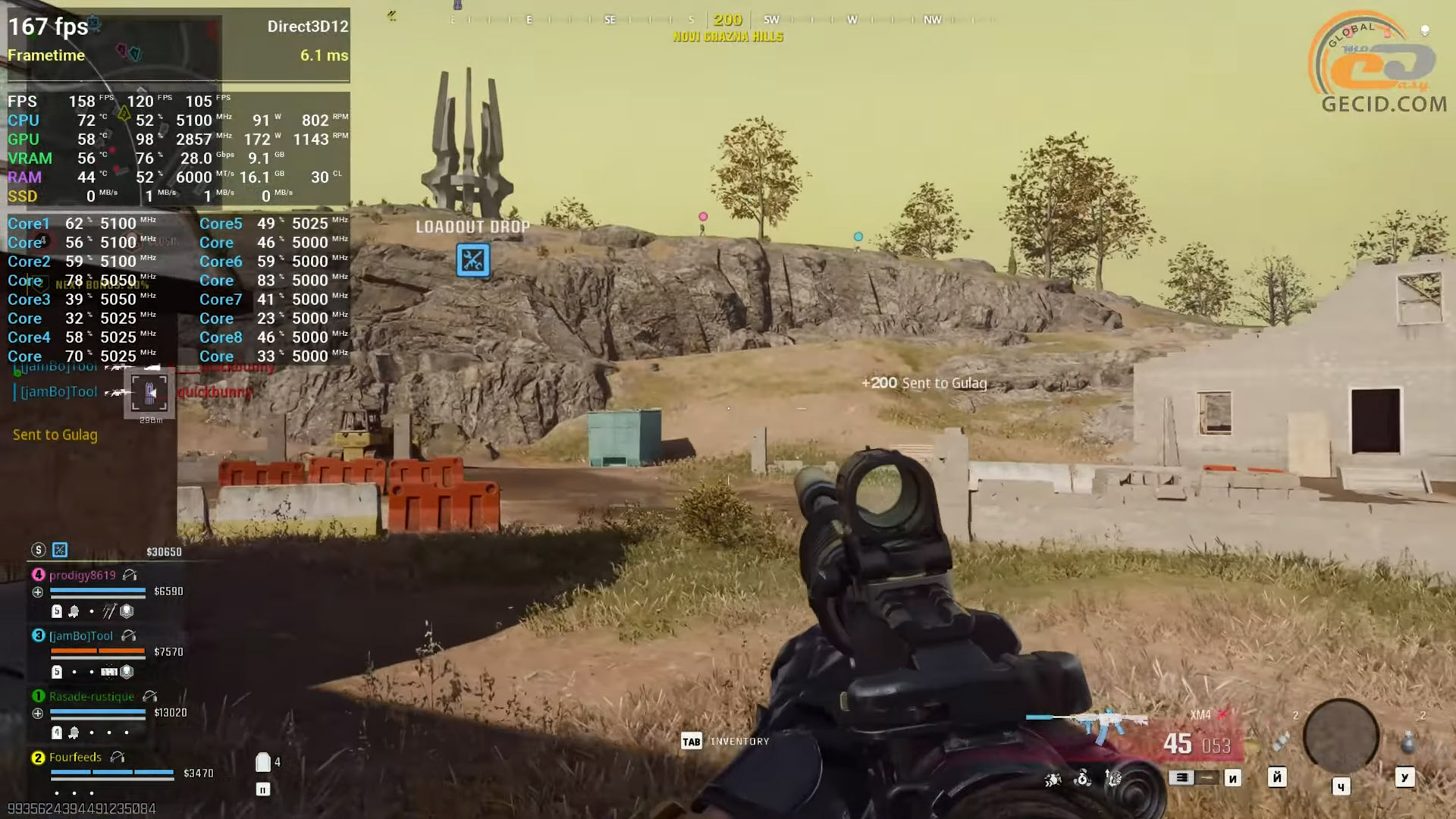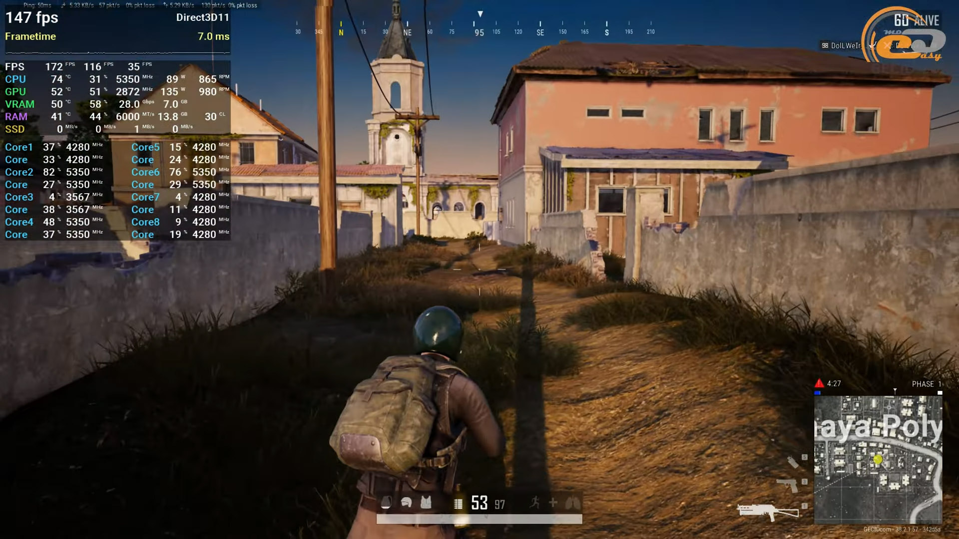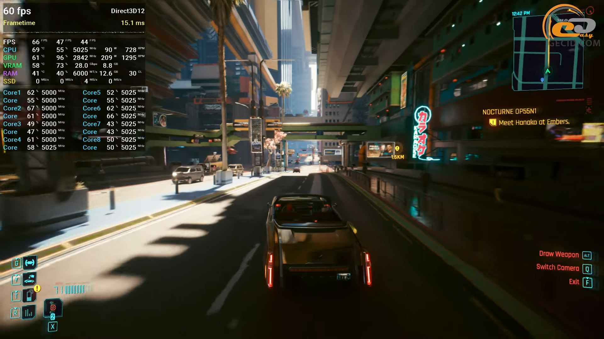 Также стоит посмотреть на производительность в улучшенной версии пятой GTA. Здесь все работает отлично. Производительность упирается разве что в лимиты энергопотребления процессора, а видеокарта работает всего на 70 процентов своих возможностей, поэтому частота кадров на открытых зеленых локациях практически не отличается от городских сцен — иногда даже становится выше. Однако в целом геймплей максимально плавный и без просадок.