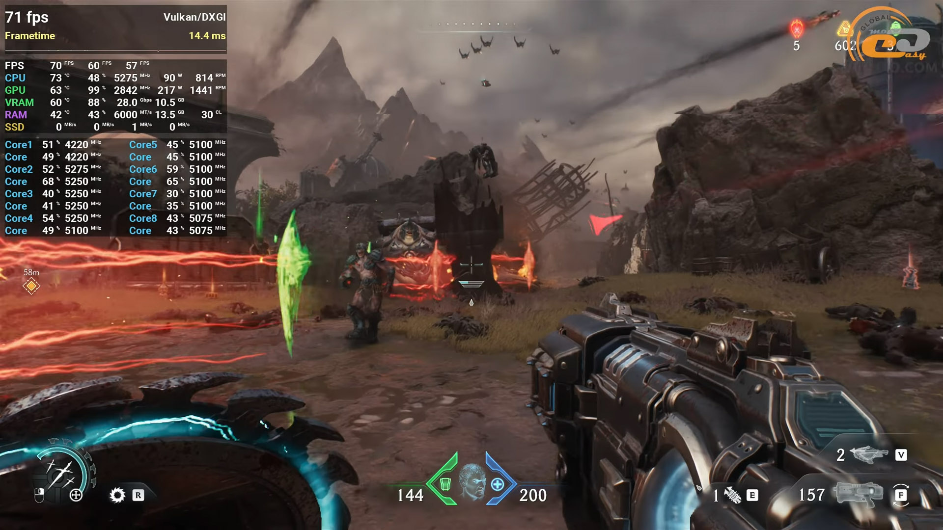 Если же к игру добавить фрейм генератор в режиме 4X, то удается получить более 200 средних обновлений экрана в секунду, что делает самые тяжелые настройки игры уже и не такими страшными.