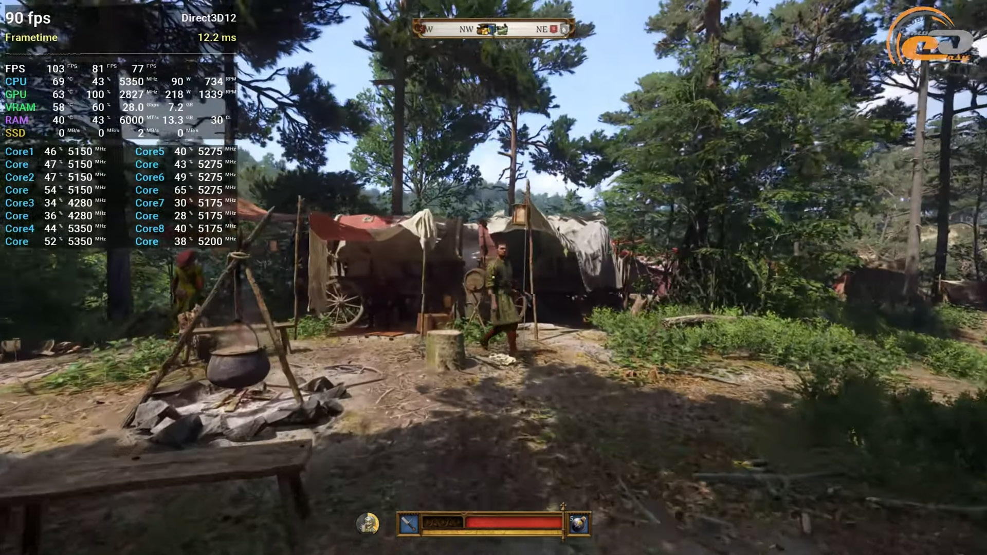 Средневековье Kingdom Come: Deliverance II также не становится проблемой для преодоления даже при ультранастройках картинки. Более того, есть даже возможность улучшить общую четкость благодаря DLAA сглаживанию. На открытых участках имеется почти 120 кадров в секунду, а на тропах густых лесов или в населенных лагерях производительность несколько снижается, однако все равно закрепляется возле трехзначных цифр на показателе FPS.