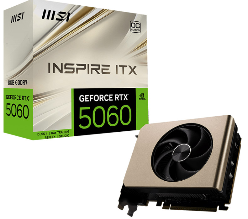 Если же при сборке мини-ПК понадобится еще более компактная модель, то можно обратить внимание на одно вентиляторные 161-мм MSI GeForce RTX 5060 8G CYCLONE OC и 145-мм MSI GeForce RTX 5060 8G INSPIRE ITX OC.