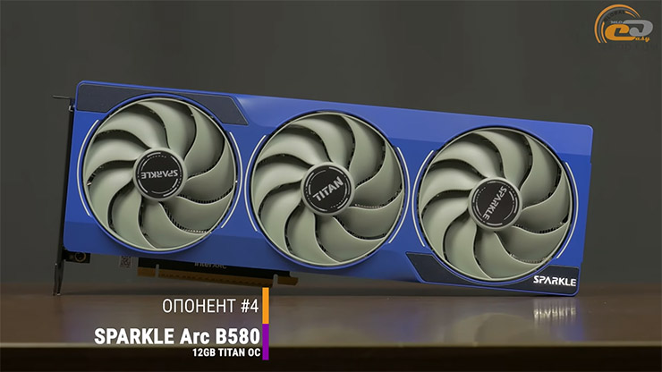 Со стороны компании Intel в соперники возьмем Sparkle Arc B580 TITAN OC Edition 12GB B580 – видеокарта нового поколения Battlemage, самое мощное решение в серии, хоть и несколько дешевле.