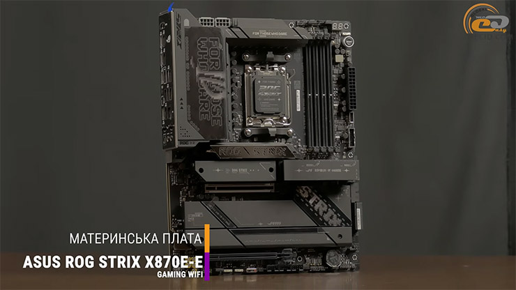 Он установлен в надежную материнскую плату ASUS ROG STRIX X870E-E GAMING WIFI на топовом чипсете.