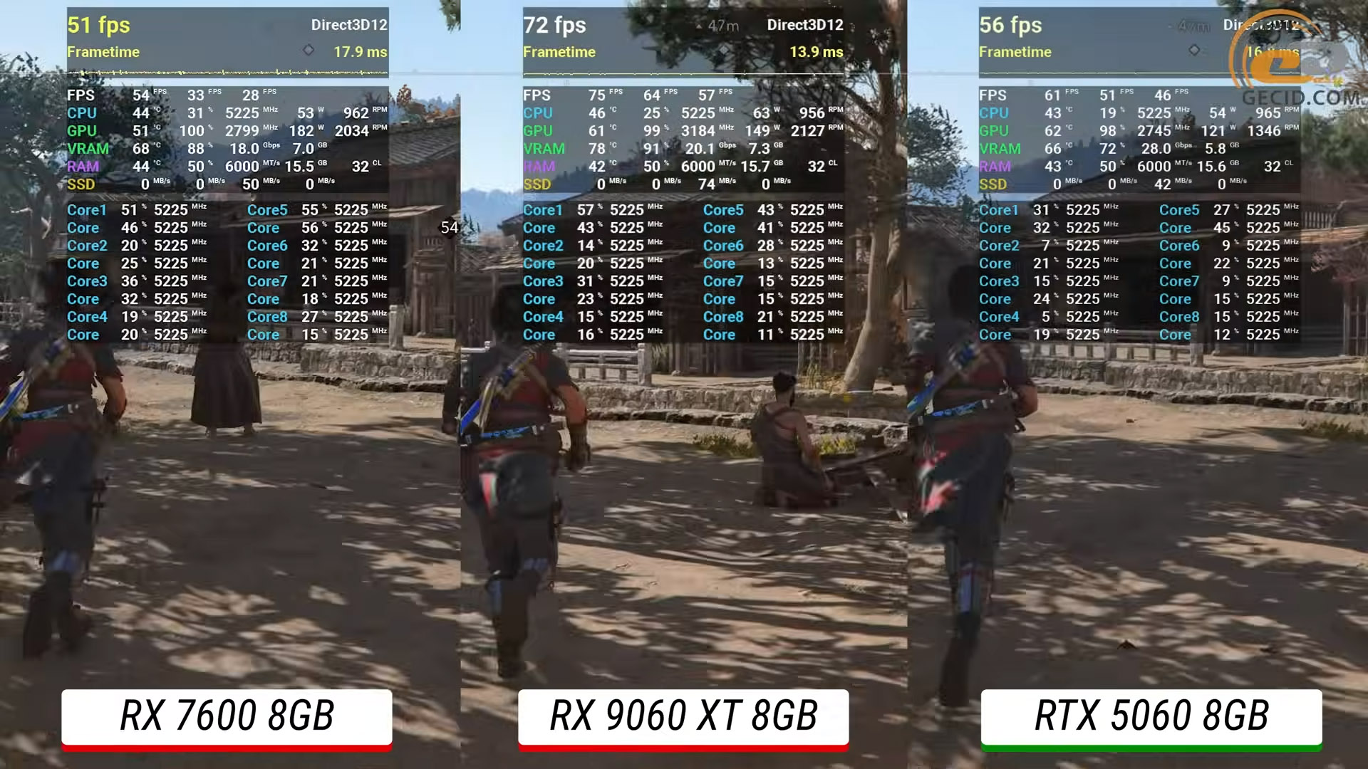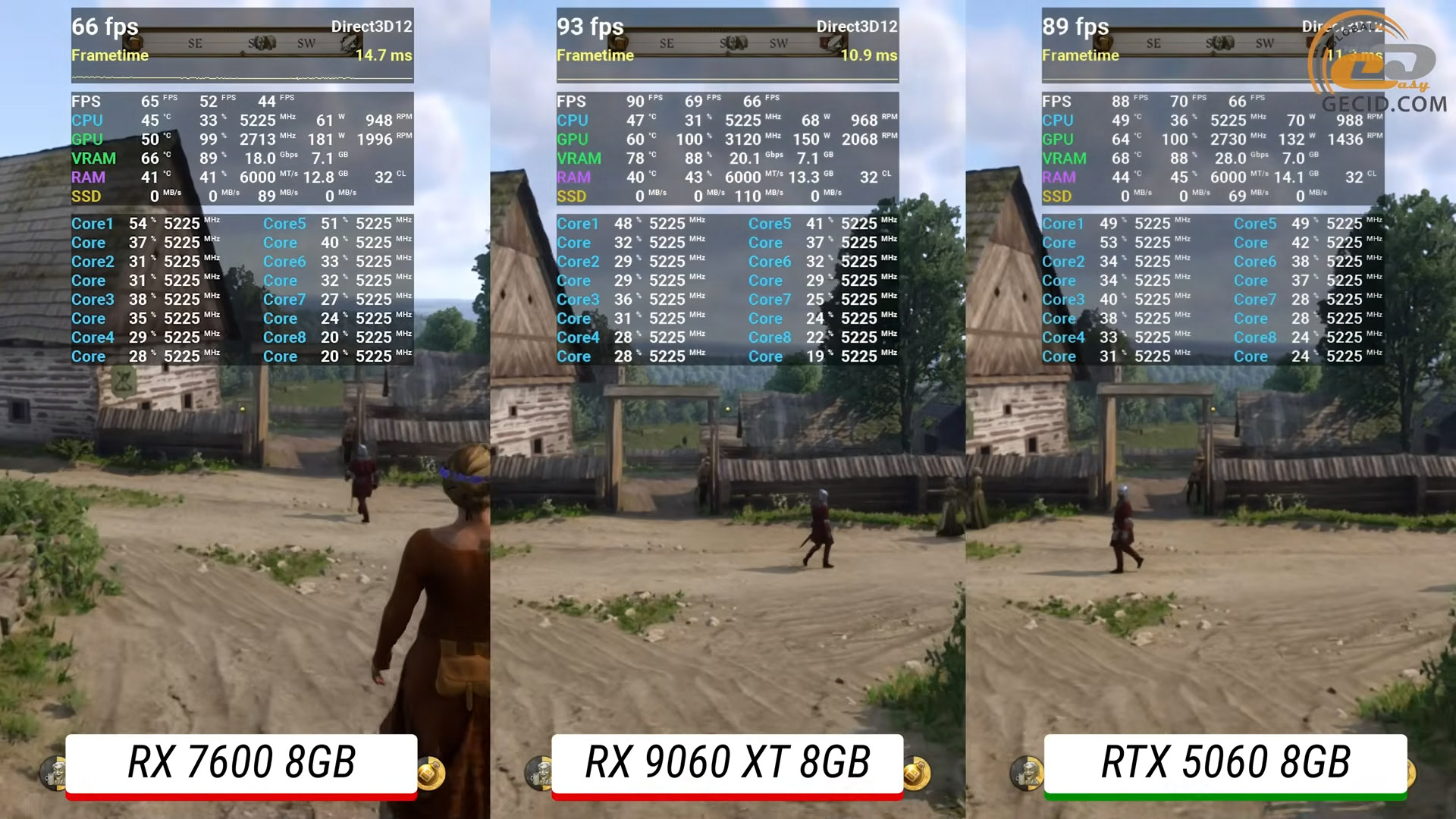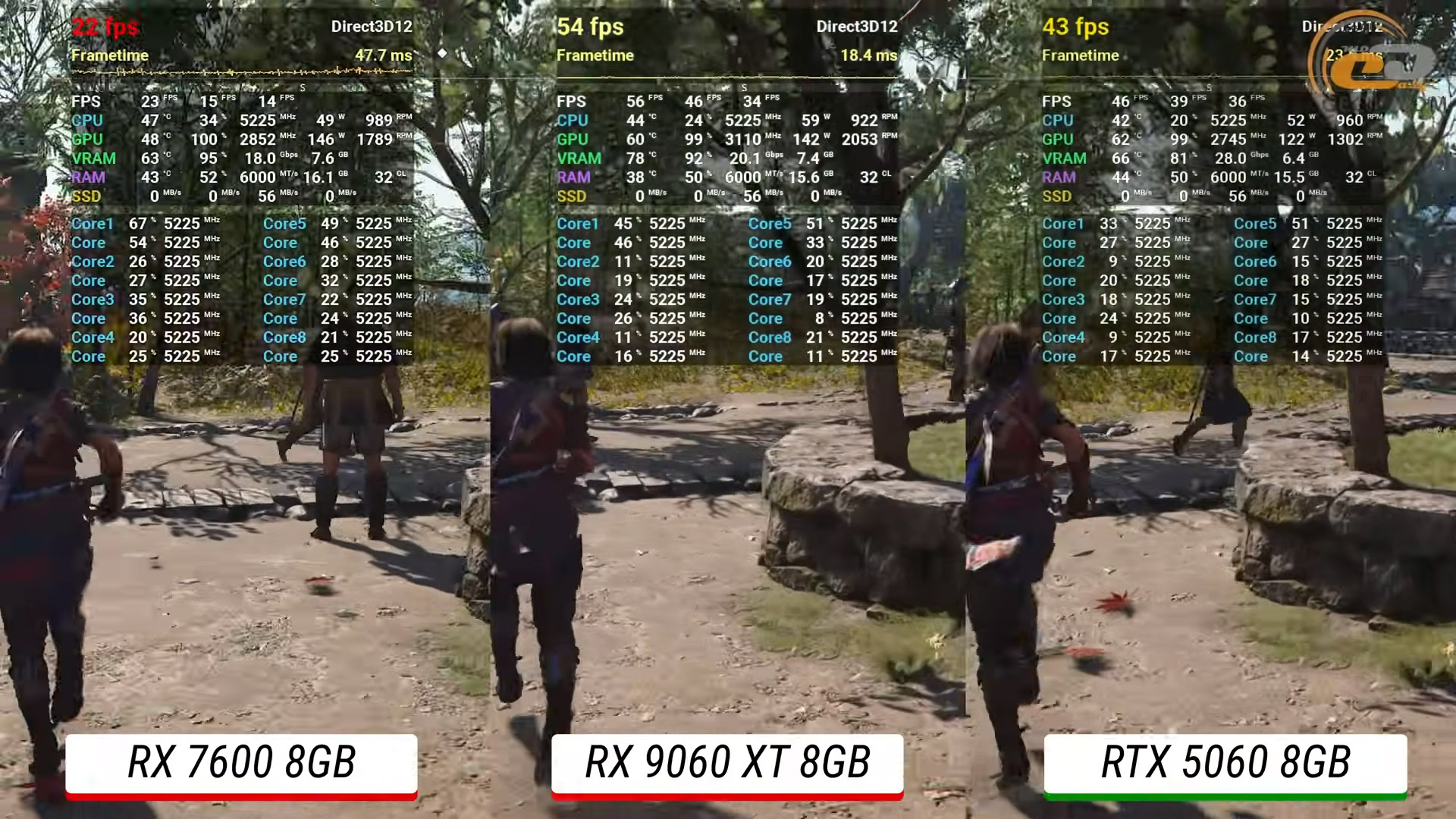 Во время прогулки по тропинкам Тросковице в Kingdom Come: Deliverance II с ультра графикой ситуация несколько стабилизировалась и отставание младшей модели от RX 9060 XT сокращается до чуть менее 40 процентов.