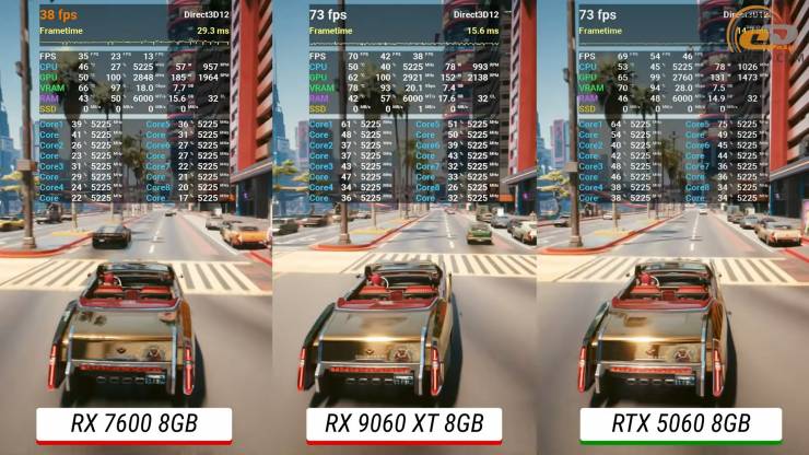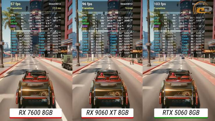 Сравнение Radeon RX 9060 XT 8 ГБ с RTX 5060/RTX 4060 Ti/RX 7600/Arc B580: новый лидер среднего класса?