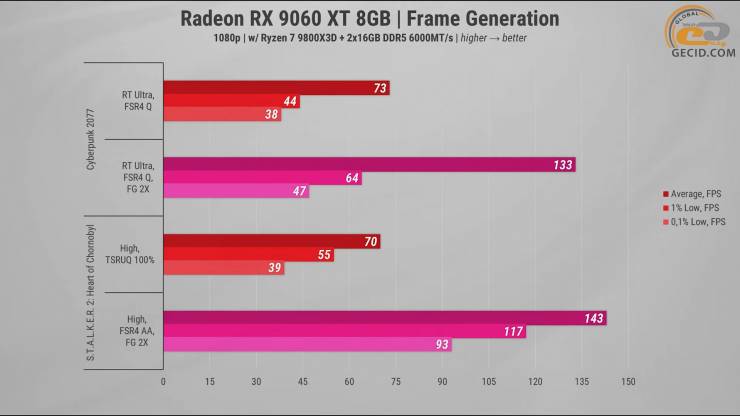 Получается, что сочетание нового поколения FSR с генерацией кадров позволяет Radeon RX 9060 XT демонстрировать ощутимо более высокую производительность в самых требовательных сценах без критической потери четкости изображения.