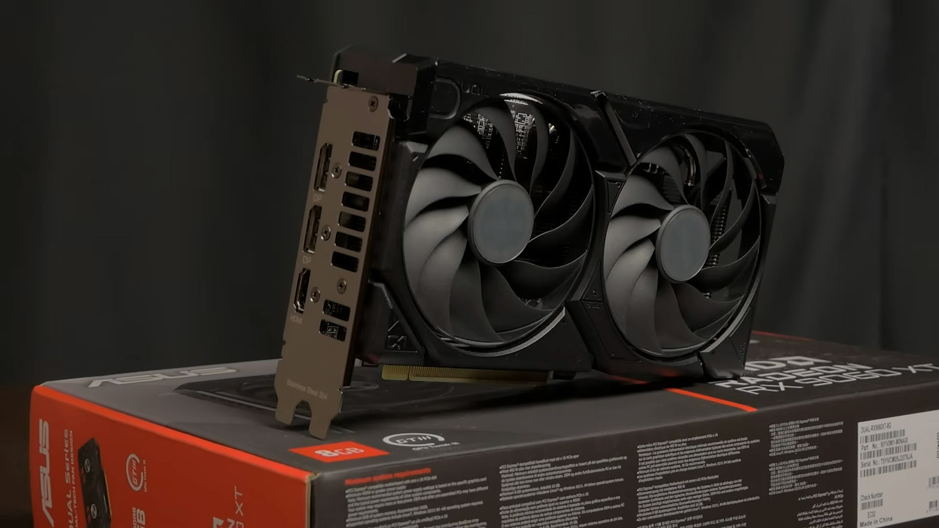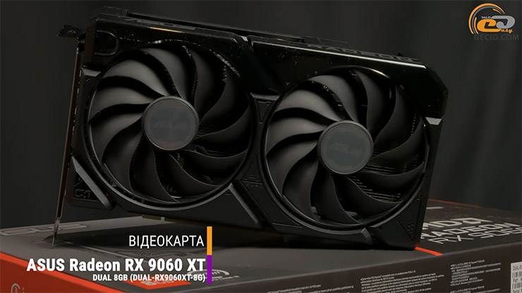 Для тестирования младшей модификации берем ASUS Dual Radeon RX 9060 XT 8GB компактную и практическую реализацию с хорошо продуманной системой охлаждения, работающей на рекомендованных частотах.