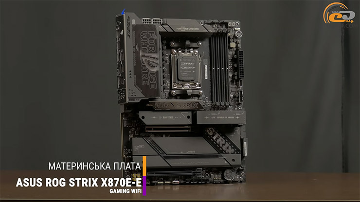 Он установлен в надежную материнскую плату ASUS ROG STRIX X870E-E GAMING WIFI на топовом чипсете.