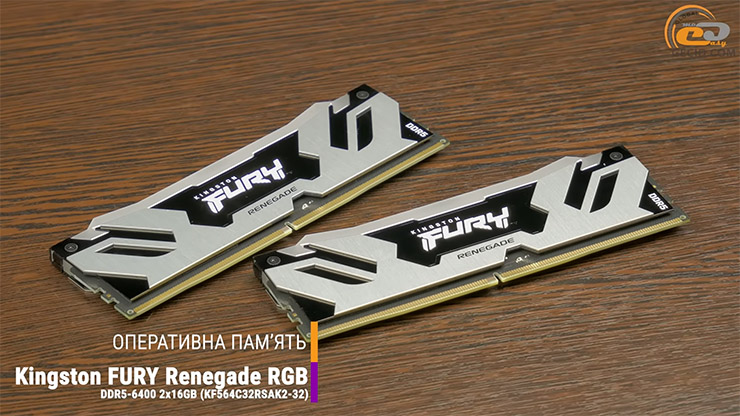 В качестве ОЗУ мы использовали двухмодульный 32-гигабайтный комплект Kingston FURY Renegade DDR5 RGB со скоростью 6400 мегатранзакций в секунду при таймингах 32-39-39 и напряжении 1.4 В, хотя во время тестов был использован профиль, на котором оперативная работа работала со скоростью 6000 МТ/c. Выглядит комплект стильно, а дополнительного блеска ему добавляет качественная 12-точечная подсветка.