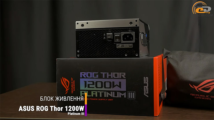 Питался стенд от блока ASUS ROG Thor 1200W Platinum III, являющегося флагманским источником для самых требовательных систем. Он соответствует стандарту ATX 3.1, имеет новый разъем PCIe 5.1 и отличается технологией GPU-First для максимально стабильной линии. Модель имеет сертификацию 80 PLUS Platinum с КПД до 94% и низкий уровень шума.