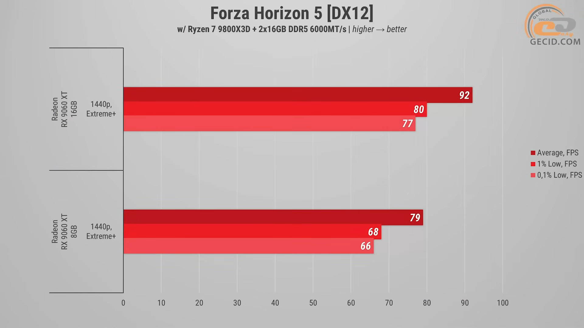На старшей 16-гигабайтной версии RX 9060 XT Forza Horizon 5 работает отлично даже на экстремальных настройках графики — как результат имеем 92 FPS в среднем, никаких проседаний и идеальная плавность даже в скоростных заездах по улочкам мексиканских поселков или болотистым джунглям.