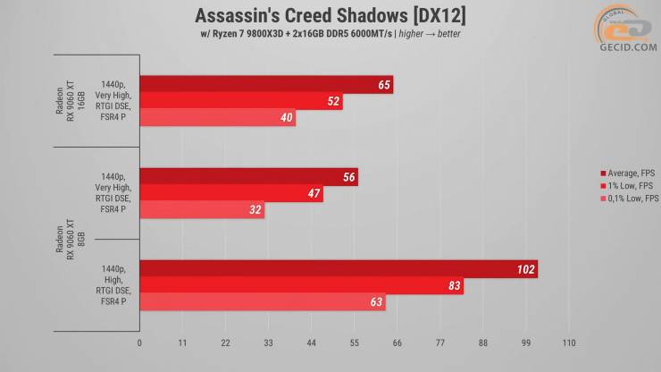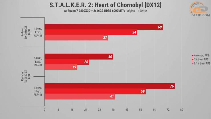 В результате Radeon RX 9060 XT в версиях с 8 и 16 ГБ видеопамяти оказались гораздо ближе друг к другу, чем можно было ожидать на первый взгляд, но ключевая разница между ними все же проявляется именно в современных тяжелых играх.