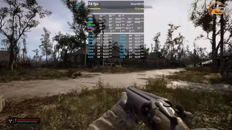 Пробежка по Залесью на эпических настройках во втором Сталкере показывает, что даже с задействованным FSR4 в сбалансированном режиме игра остается очень требовательной не только к видеопамяти, но и к другим ресурсам графического процессора. На RX 9060 XT с 16 ГБ видеопамяти получаем около 70 FPS, и апскейлер помогает удержать приемлемую плавность в тяжелых сценах.