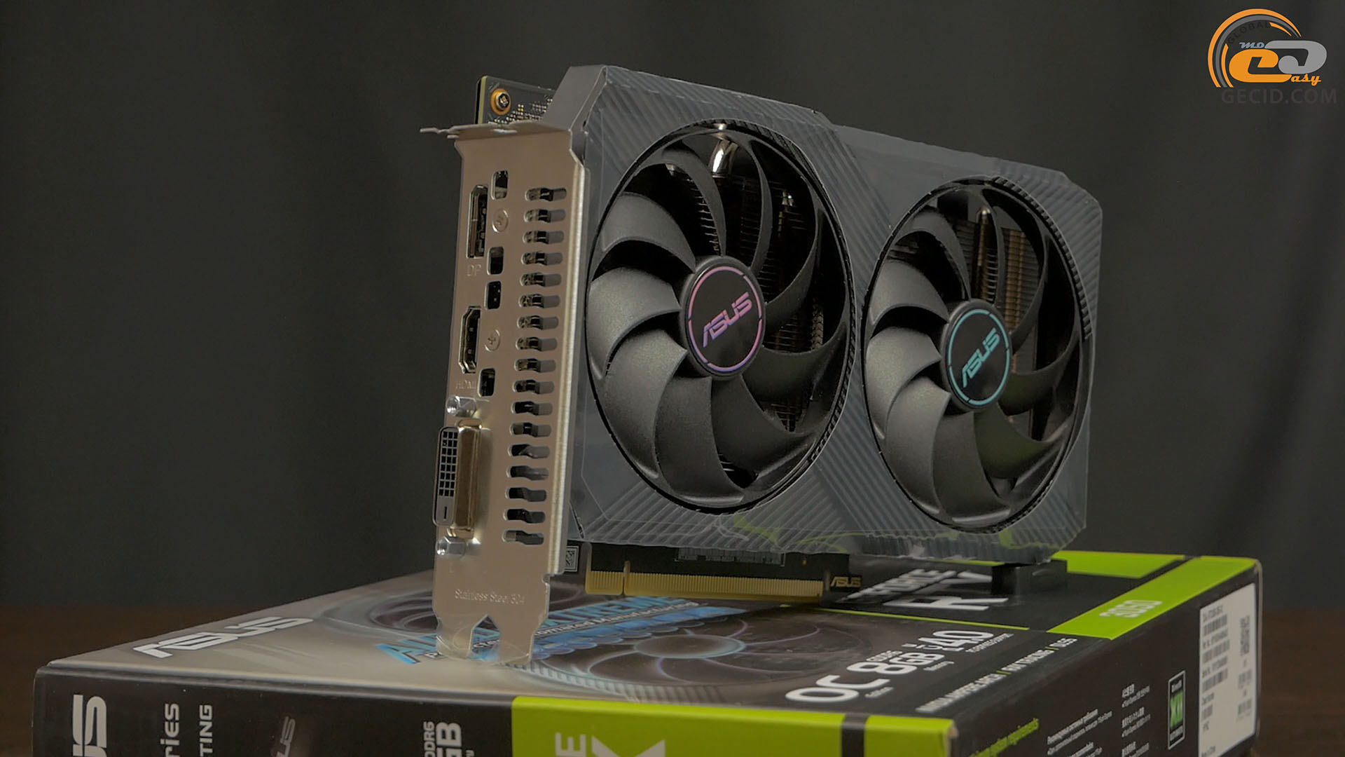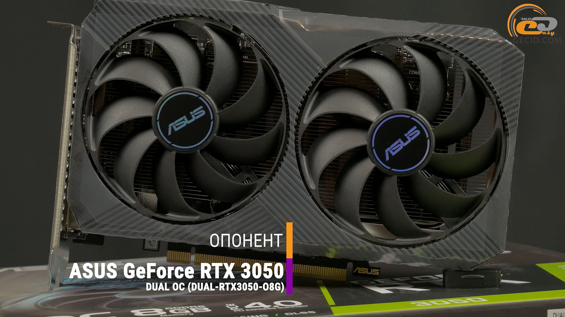 Более подробно изучать производительность мы будем на примере ASUS DUAL GeForce RTX 3050 OC, которая получила несколько повышенные бустовые частоты и более компактные размеры по сравнению с референсной версией.